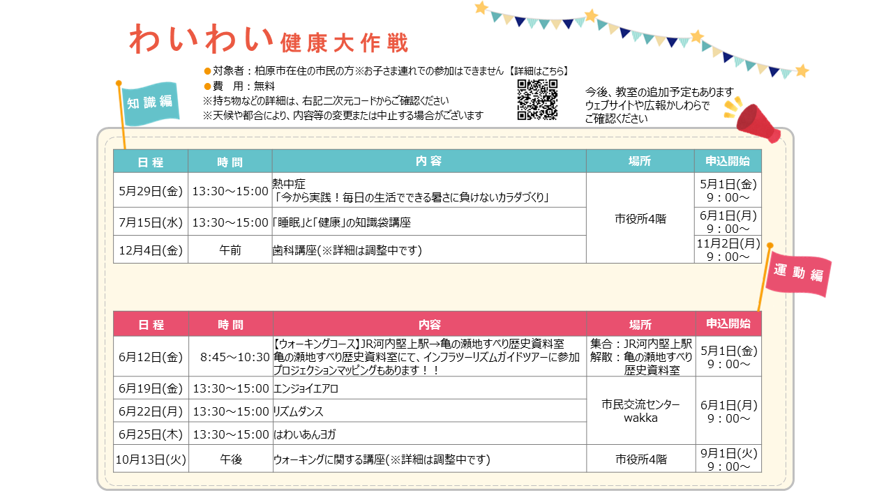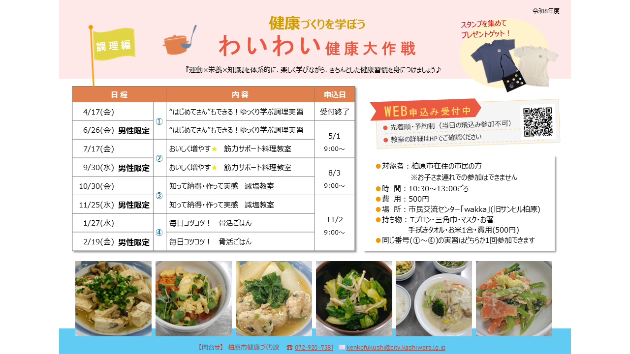 令和8年度『わいわい健康大作戦』の日程表(調理編、知識編・運動編)※4月時点